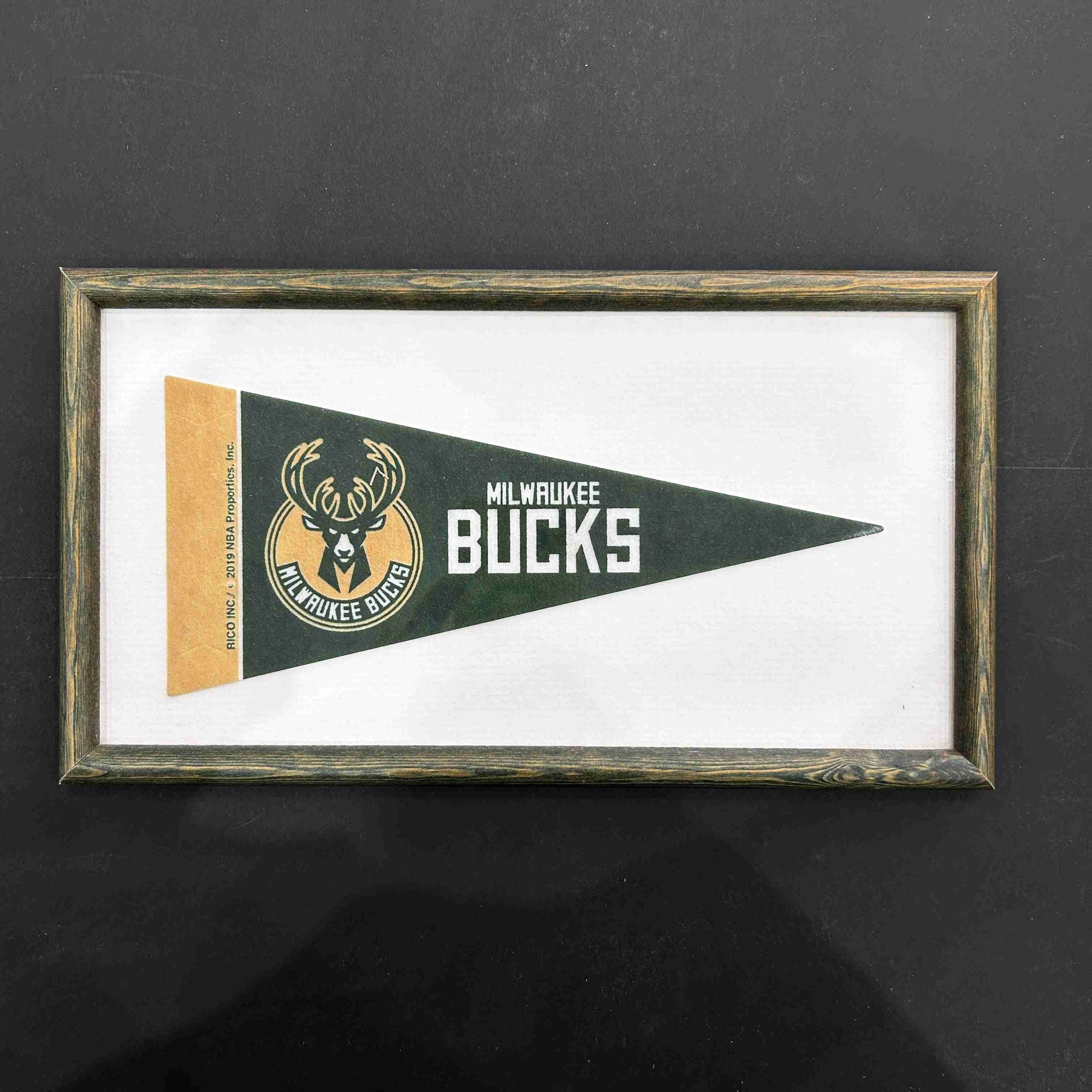 Cadre - Mise en valeur d'un fanion de l'équipe de basketball MILLWAUKEE BUCKS