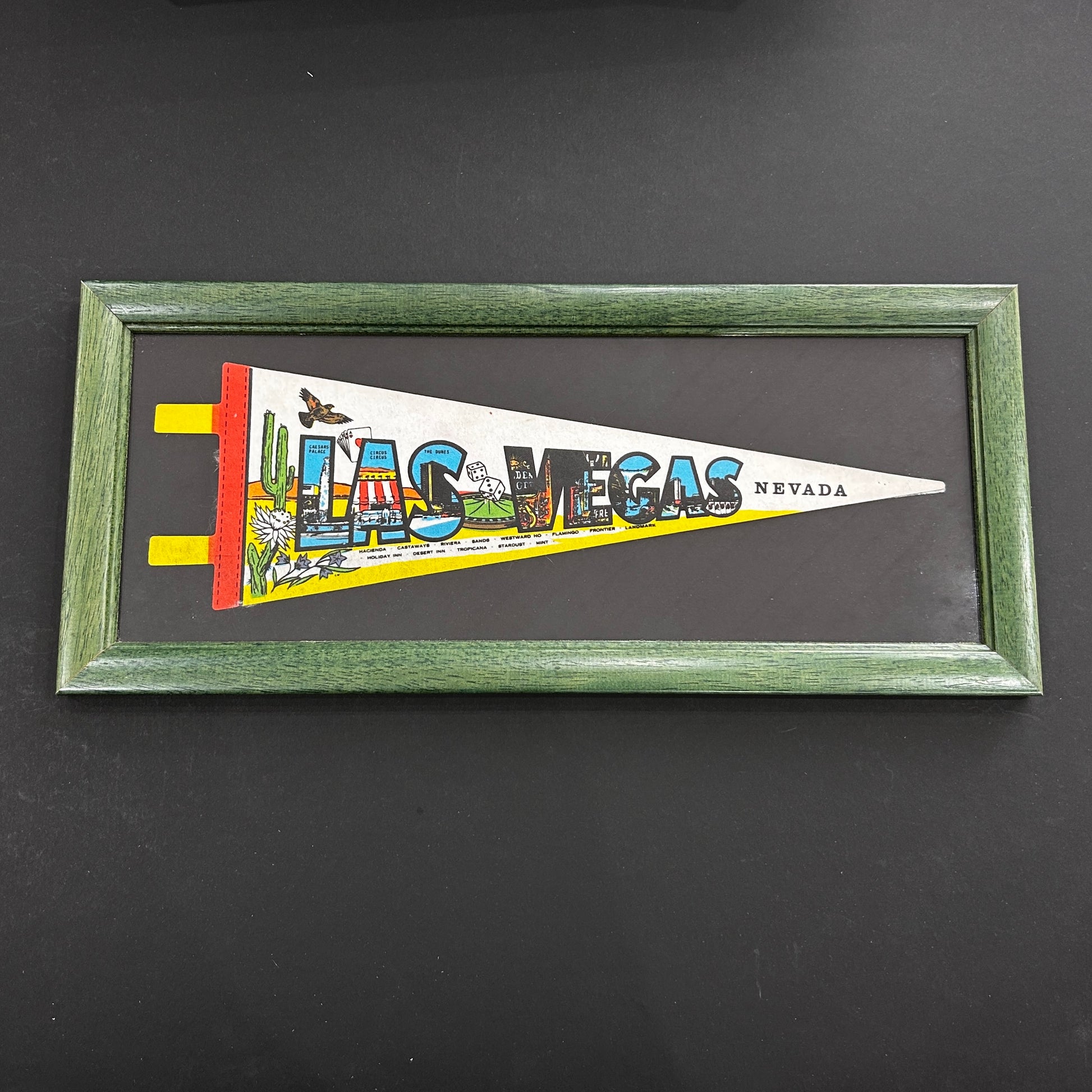 Cadre - Mise en valeur d'un fanion original vintage souvenir de Las Vegas, Nevada, USA