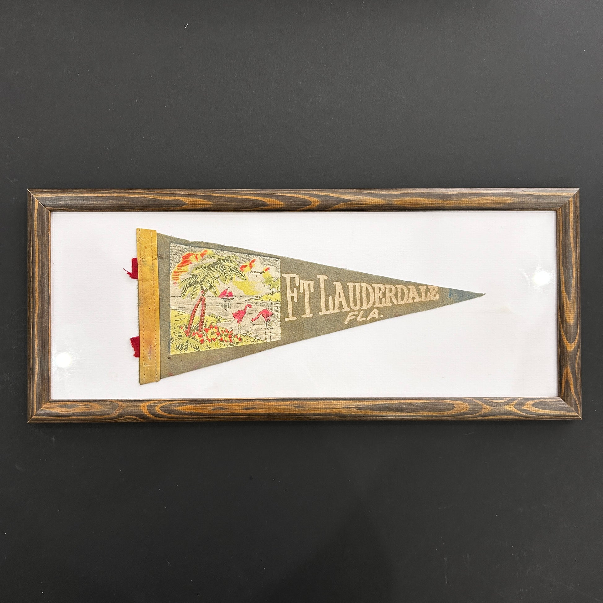Cadre - Mise en valeur d'un fanion original vintage souvenir de Fort Lauderdale, Florida, USA
