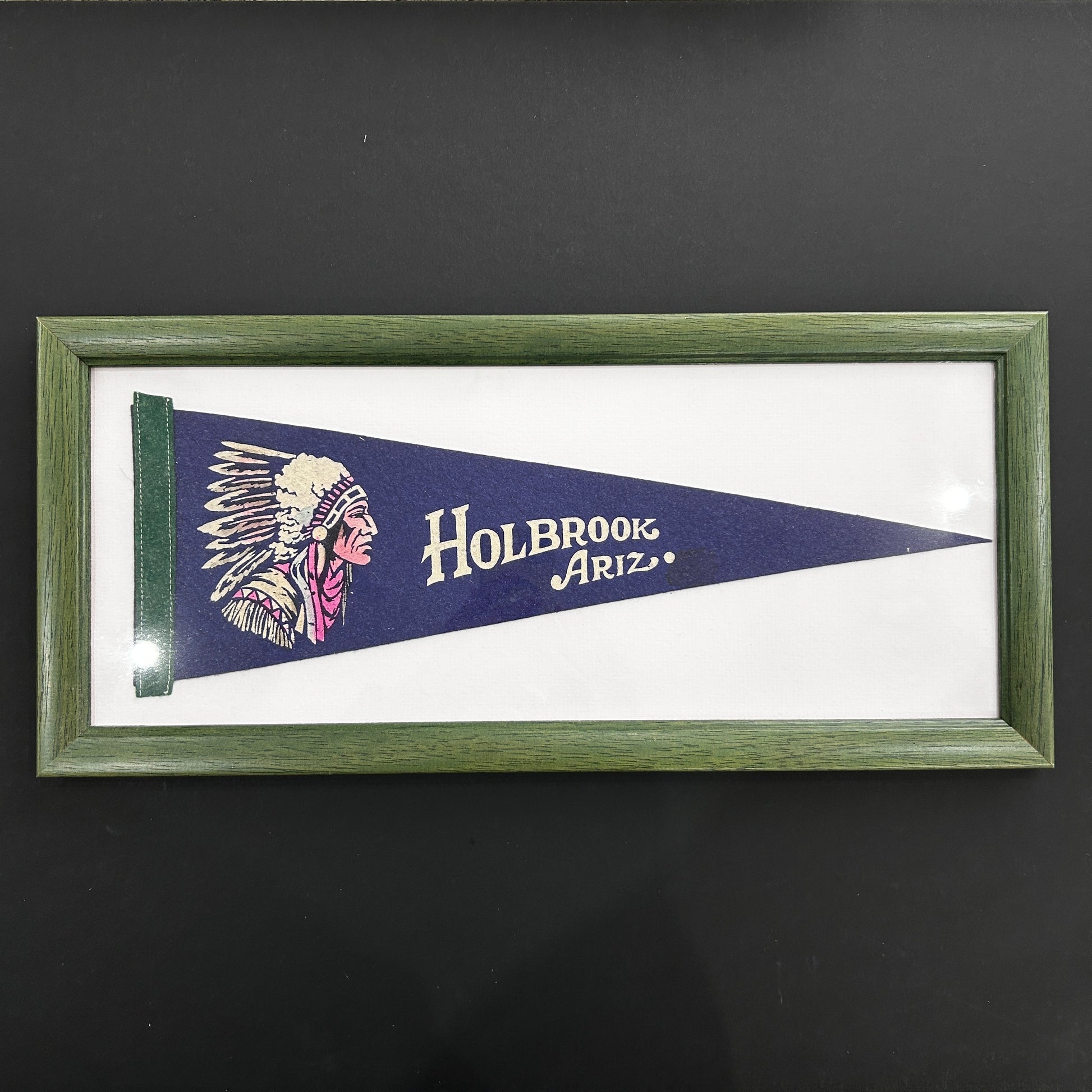 Cadre - Mise en valeur d'un fanion original vintage souvenir de Holzbrook, Arizona, USA