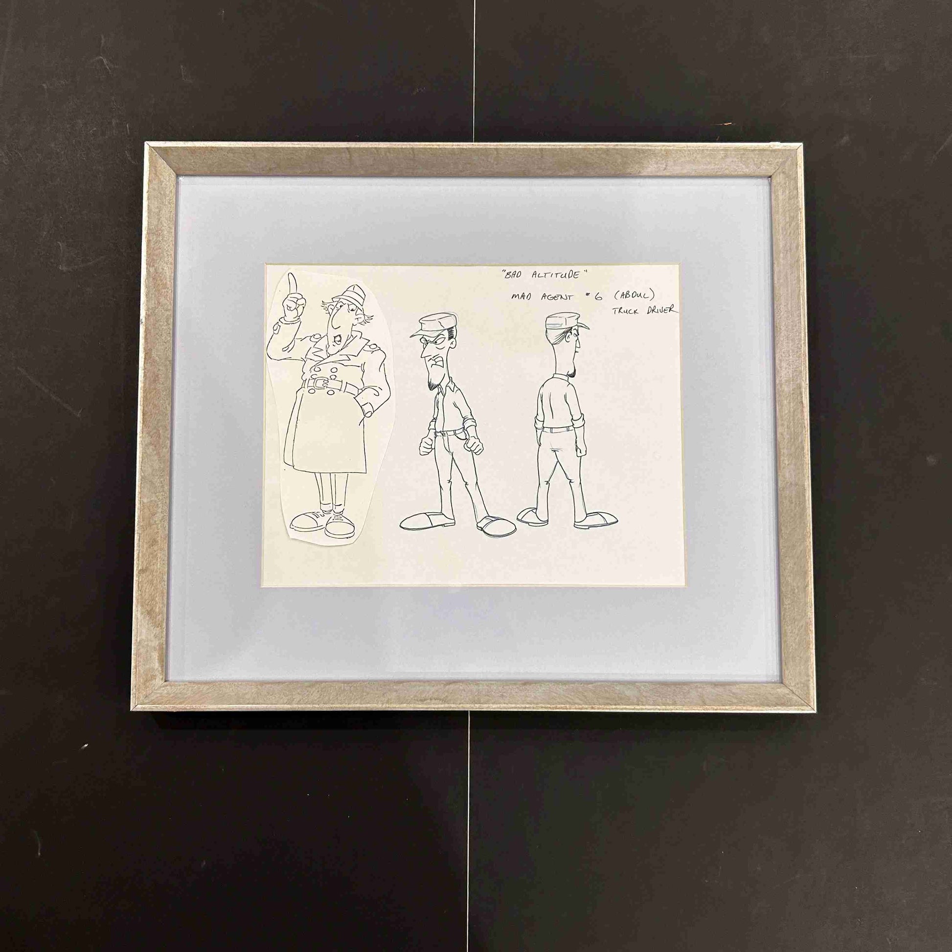 Cadre - Mise en valeur d'un crayonné original du personnage Mad Agent du dessin animé Inspecteur gadget
