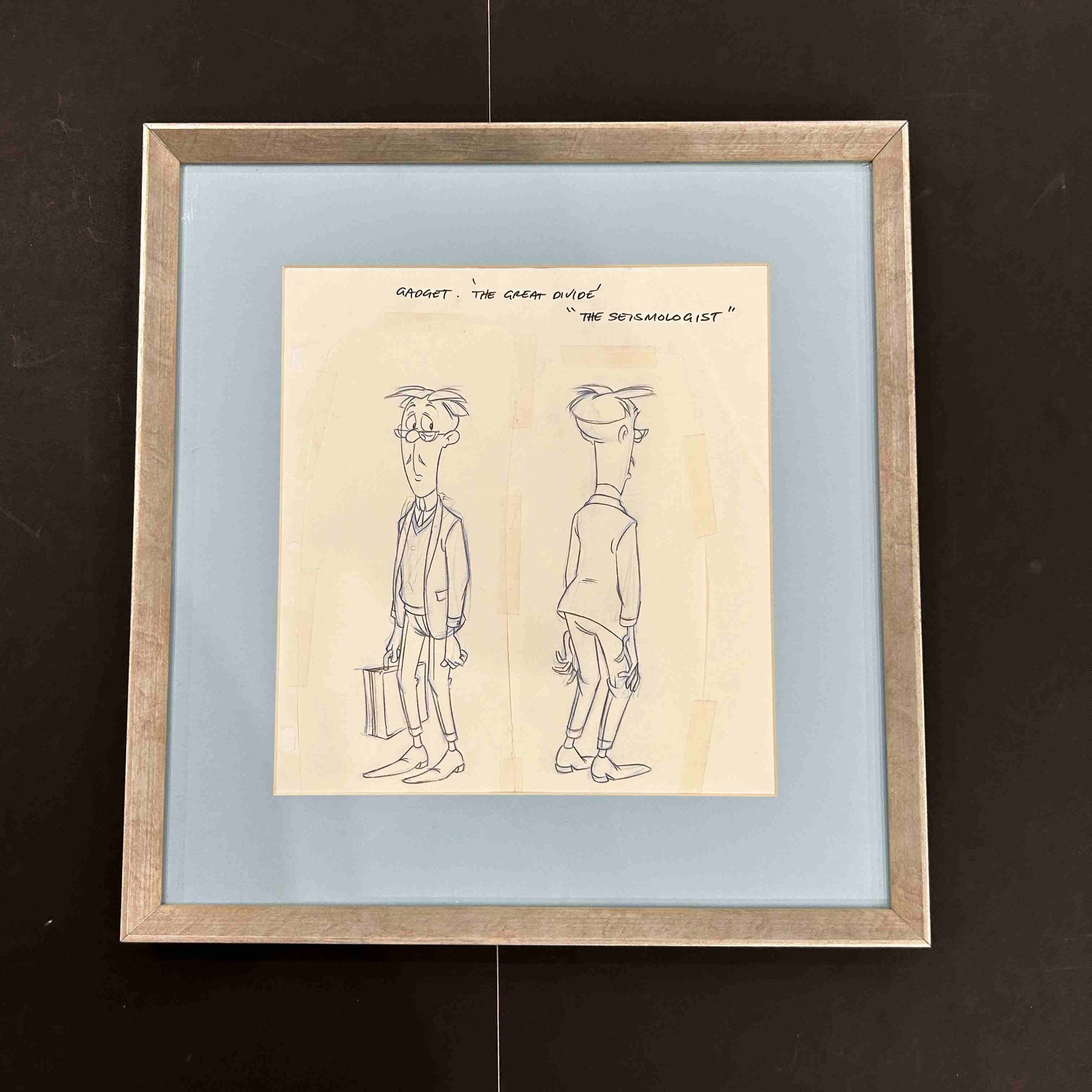 Cadre - Mise en valeur d'un crayonné original du personnage le sismologue dans le dessin animé Inspecteur gadget
