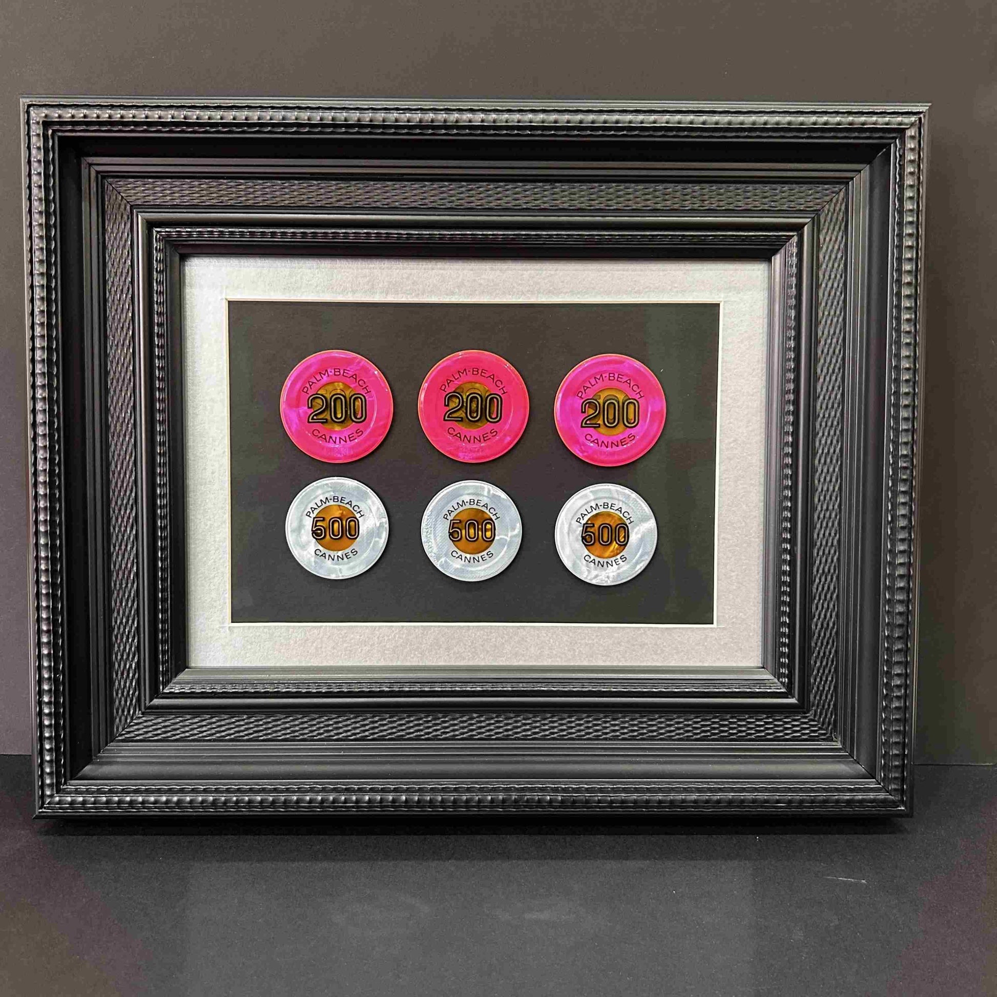 Cadre - Mise en valeur de jetons d'époque du Casinon Palm Beach de Cannes